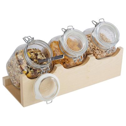 Der Buffet Ständer "Good Morning" von ASSHEUER & POTT verwandelt dein Frühstück oder Brunch-Buffet in ein stilvolles Highlight. Aus hochwertigem Ahornholz gefertigt, besticht dieser Holzständer nicht nur durch seine elegante Optik, sondern auch durch seine Funktionalität. Mit den drei mitgelieferten Gläsern, die jeweils ein Fassungsvermögen von 2 Litern haben, kannst du deine Lieblingsaufstriche, Müsli oder Obstsalate ansprechend präsentieren.