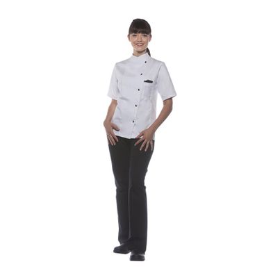 Die klassische, elegante weiße Farbe lässt sich mühelos mit verschiedenen Küchenoutfits kombinieren und vermittelt Professionalität und Hygiene. Die Kochjacke ist mit praktischen Details ausgestattet, wie einem Stehkragen und durchgängiger Knopfleiste, die dir eine optimale Bewegungsfreiheit ermöglicht. Dank der hohen Atmungsaktivität des Materials bleibt die Jacke auch bei intensiven Arbeitseinsätzen angenehm trocken.