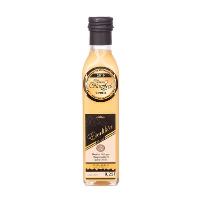 Dieser oftmals prämierte Likör wird direkt am Hof mit Eiern aus eigener Hühnerhaltung hergestellt. Seine bereits überregionale Bekanntheit spricht für den exquisiten Geschmack und die hervorragende Qualität des Produktes. Ob pur im Stamperl, als Zutat im Kuchen, im Feingebäck oder im Konfekt, als Basis für Eierlikörpunsch oder als Topping über Eis und Desserts...die Arten des Eierlikörgenusses sind vielfältig. Für Genießer, die gerne sich selbst und andere mit außergewöhnlcihen Produkten verwöhnen und cremigen Eierlikör schätzen.