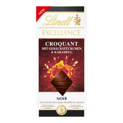LINDT Excellence Croquant Gebäck mit Karamell ist eine exquisite Kombination aus feiner dunkler Schokolade und knusprigen Gebäckstückchen, die für jeden Schokoladenliebhaber ein echtes Highlight darstellt. Der hohe Kakaoanteil von mindestens 47 % sorgt für einen intensiven, vollmundigen Geschmack, der durch die zarten Karamellstücke und knusprigen Gebäckstücke harmonisch ergänzt wird.
