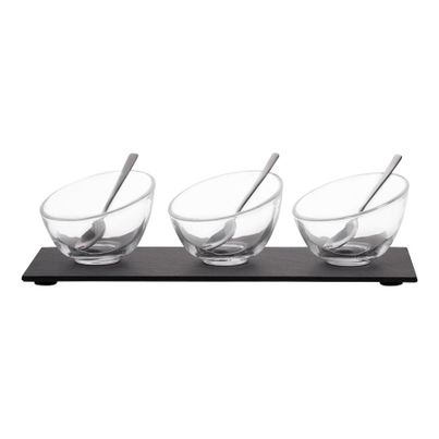 Die Pflege ist ebenfalls unkompliziert: Das Melamin lässt sich leicht reinigen und ist spülmaschinenfest, während die Glas-Schalen einfach von Hand gespült werden können. Dieses Set ist nicht nur praktisch, sondern auch ein echter Blickfang auf jedem Tisch. Setze deinen persönlichen Stil in Szene und mache deine Events zu einem unvergesslichen Erlebnis mit dem Flow Slate Appetizer Set von LUNASOL.