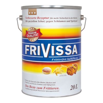 Mit dem halbflüssigen Frittierfett von FRIVISSA holst du dir ein hochwertiges Pflanzenfett in Lebensmittelqualität nach Hause, das ideal für alle deine Frittier- und Bratbedürfnisse ist. Dieses vielseitige Fett basiert auf einer sorgfältigen Mischung aus Sonnenblumen- und Palmöl und eignet sich besonders gut zum Frittieren von Kartoffeln, Gemüse und Fleisch. Durch die ausgewogene Kombination der Öle erzielt das Frittierfett eine hohe Temperaturbeständigkeit, sodass deine Speisen knusprig und goldbraun werden, ohne dass sie übermäßig fettig wirken.