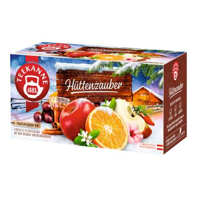 Der Früchtegarten Hüttenzauber Tee von Teekanne bringt dir den winterlichen Genuss direkt in deine Tasse. Mit seinem verführerischen Rum-Trauben- und Orangengeschmack zaubert er eine gemütliche Atmosphäre in dein Zuhause. Die sorgfältig ausgewählte Mischung aus Äpfeln, Hibiskus, Hagebutten und Orangenschalen wird durch eine Prise Zimt abgerundet, die für eine wohltuende Wärme sorgt. Ein Tipp für die Zubereitung: Lass den Teebeutel mindestens 5-8 Minuten in heißem Wasser ziehen, um das volle Aroma zu entfalten. Für einen besonderen Genuss kannst du den Tee mit einem Schuss Orangensaft verfeinern oder mit einer Zimtstange servieren. Dieser vegane Früchtetee ist ideal für die kalte Jahreszeit und passt perfekt zu weihnachtlichen Leckereien. Ob als wärmender Begleiter an kalten Tagen oder als Highlight bei deinem Adventstee, der Hüttenzauber Tee bietet dir ein unvergleichliches Geschmackserlebnis. Bewahre ihn an einem trockenen, kühlen Ort auf, um die Aromen optimal zu erhalten.