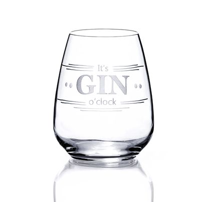 Mit Motiv „It’s GIN o’clock“ sandgestrahlt mit händischer Gravur