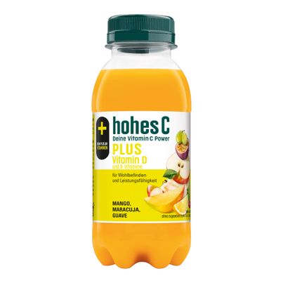 Dein PLUS an Vitaminen: hohes C PLUS Sonnenvitamin D deckt bereits mit einem Glas (0,25 L) deinen Tagesbedarf an natürlichem Vitamin C und einen wesentlichen Teil an Vitamin D, Pantothensäure und Vitamin B12. Vitamin C und D unterstützen die normale Funktion des Immunsystem und tragen zum persönlichen Wohlbefinden bei. Die B-Vitamine Pantothensäure und Vitamin B12 tragen zur Reduktion von Müdigkeit und Ermüdung bei, sowie die Pantothensäure zu einer normalen geistigen Leistungsfähigkeit. Eine ausgewogene Ernährung und gesunde Lebensweise wird empfohlen.