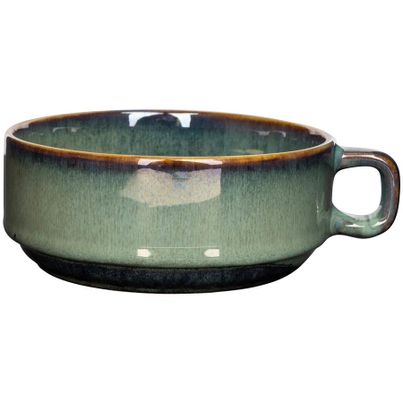 Der Jade Suppentopf von COSY&TRENDY ist die perfekte Ergänzung für deine Küche. Mit einem Fassungsvermögen von 42 cl und einem Durchmesser von 125 mm bietet dieser Topf ausreichend Platz für köstliche Suppen, Eintöpfe und andere warme Speisen. Besonders praktisch ist die Mikrowellenfestigkeit: Du kannst deine Gerichte schnell und einfach aufwärmen, ohne zusätzlichen Geschirrwechsel. Die kompakte Höhe von 50 mm sorgt dafür, dass der Suppentopf auch in kleinen Mikrowellen seinen Platz findet. Die Handhabung ist dank des praktischen Griffs besonders komfortabel. Ob für die Mittagspause im Büro oder beim gemütlichen Abendessen zu Hause – der Jade Suppentopf ist vielseitig einsetzbar. Nach der Nutzung kannst du ihn ganz einfach in die Spülmaschine geben, was die Reinigung zum Kinderspiel macht. Für die Zubereitung deiner Lieblingssuppe einfach frisches Gemüse, Brühe und Gewürze in den Topf geben, abdecken und in der Mikrowelle erhitzen. Du kannst auch tolle Variationen ausprobieren, indem du verschiedene Zutaten kombinierst, wie zum Beispiel Linsen für eine proteinreiche Option oder püriertes Gemüse für eine cremige Konsistenz. Der Jade Suppentopf ist nicht nur funktional, sondern auch stilvoll. Mit seinem eleganten Design passt er in jede Kücheneinrichtung und kann auch direkt auf den Tisch gestellt werden. Verwandle deine Essenszeit in ein wahres Erlebnis und profitiere von der praktischen Anwendung dieses vielseitigen Topfes. Egal ob für dich selbst oder als Geschenk für einen Freund – mit diesem Suppentopf triffst du die richtige Wahl.
