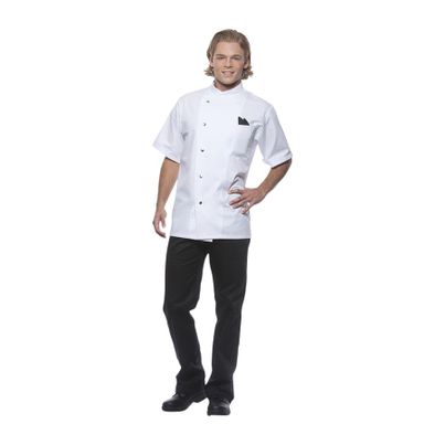Die Kochjacke Gustav in Weiß von KARLOWSKY PASSION vereint Stil und Funktionalität. Hergestellt aus 65% Polyester und 35% Baumwolle bietet sie einen hohen Tragekomfort bei einer leichten Stoffqualität von 215 g/m². Perfekt für Profiköche und Hobbyköche, die Wert auf eine ansprechende Optik legen. Die praktische Knopfleiste und die ergonomische Passform sorgen für Bewegungsfreiheit in der Küche.