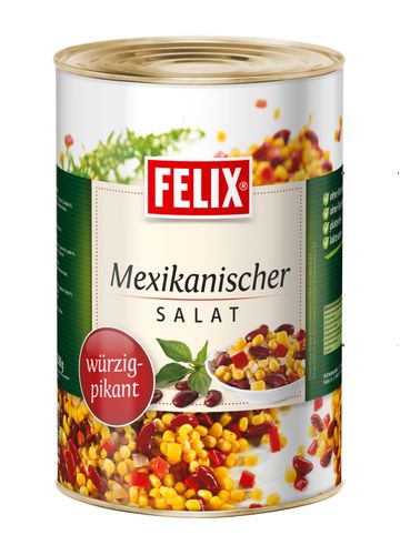 Der Mexicosalat würzig-pikant von Felix bringt mit seiner Mischung aus knackigem Gemüsemais, roten Bohnen und Paprika feurige Abwechslung auf deinen Tisch. Ideal für vegane und laktosefreie Ernährung, verleiht er deinen Gerichten eine authentische mexikanische Note. Perfekt als Beilage oder für kreative Salatkreationen.