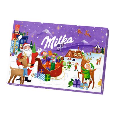Advents-Spaß für kleine Schokoladenliebhaber! Der Milka Adventskalender überrascht täglich mit weihnachtlichen Figuren aus zarter Alpenmilchschokolade sowie Alpenmilchschokolade mit cremiger Milchcrème-Füllung.