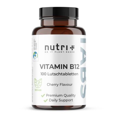 Täglich eine Lutschtablette (gelutscht oder gekaut) versorgt den Körper optimal mit Vitamin B12 (500 µg B12 pro Tablette). Außerdem schmecken die Tabletten erfrischend lecker nach Kirsche, zergehen angenehm auf der Zunge und sind somit auch praktisch für unterwegs. Unsere Vitamin B12 Lutschtabletten sind zu 100 % vegan und frei von Aspartam, Gluten, künstlichen Farbstoffen oder Trennmitteln. Die Lutschtabletten werden in Deutschland von unseren Ernährungswissenschaftler*innen entwickelt und unter strengsten Qualitätsstandards (IFS Food und GMP) produziert.