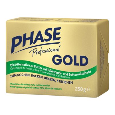 Professional Gold von PHASE stellt eine kostengünstige und vielseitige Alternative zu herkömmlicher Butter dar. Mit einem hohen Anteil von 72% pflanzlichen Ölen, hauptsächlich aus Palm- und Rapsöl, verbindet dieses Produkt die Vorteile einer pflanzlichen Basis mit der cremigen Konsistenz, die du beim Kochen, Backen, Braten oder Streichen benötigst. Die Verwendung von Professional Gold ist einfach und flexibel. Beim Braten verleiht es deinen Speisen eine köstliche Note, während es beim Backen für eine saftige Textur sorgt. Möchtest du deine Brote oder Brötchen bestreichen? Mit diesem Produkt gelingt dir das ganz mühelos und ohne Kompromisse im Geschmack. Auch in der Zubereitung von Saucen oder Dressings ist Professional Gold eine hervorragende Wahl, da es sich dank der enthaltenen Emulgatoren optimal mit anderen Zutaten verbindet. Die Kombination aus 10% Buttermilch und natürlichen Aromen sorgt dafür, dass du nicht auf den typischen Buttergeschmack verzichten musst. Zudem ist es glutenfrei, was es zu einer idealen Wahl für Menschen mit Glutenunverträglichkeit macht. Die enthaltenen Vitamine A und D tragen zusätzlich zu einer ausgewogenen Ernährung bei. Um die besten Ergebnisse zu erzielen, kannst du Professional Gold wie herkömmliche Butter verwenden. Achte darauf, die richtige Temperatur beim Backen oder Kochen zu wählen, um die optimale Konsistenz zu erreichen. Wenn du es streichfähig magst, empfiehlt es sich, das Produkt etwas temperieren zu lassen. Mit Professional Gold erhältst du nicht nur eine hochwertige Zutat für deine Küche, sondern auch eine flexible Lösung für zahlreiche Rezepte. Egal, ob du ein einfaches Rührei zaubern oder einen aufwendigen Kuchen backen möchtest, dieses Produkt ist dein zuverlässiger Begleiter. Füge es deinem nächsten Rezept hinzu und entdecke die vielfältigen Möglichkeiten, die dir Professional Gold bietet!