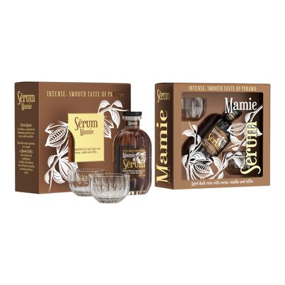 Der Rum GP+2Gläser 40% vol. 0,7l, Serum Mamie, verkörpert das Erbe einer legendären Bar-Besitzerin aus Panama. Diese exquisite Mischung aus dunklen, gereiften Rumsorten fasziniert mit einem intensiven Aroma, das Noten von Toffee, Schokolade, Vanille und Honig vereint. Du kannst den Rum pur genießen, um die komplexen Geschmacksnuancen voll zur Geltung kommen zu lassen. Ideal ist Serum Mamie auch in Cocktails, die eine besondere Note erfordern – probiere ihn in einem klassischen Rum Old Fashioned oder einem Schokoladen-Mojito.