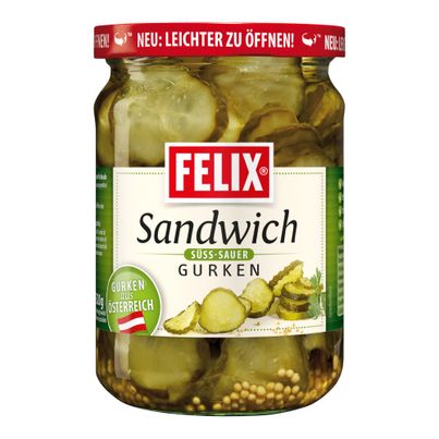 Mit der EAN 9000295703533 in deinem Vorrat wird jedes Gericht zum Genuss. Setze auf Qualität und Geschmack – die Felix Sandwich Gurken süß-sauer sind die perfekte Wahl.