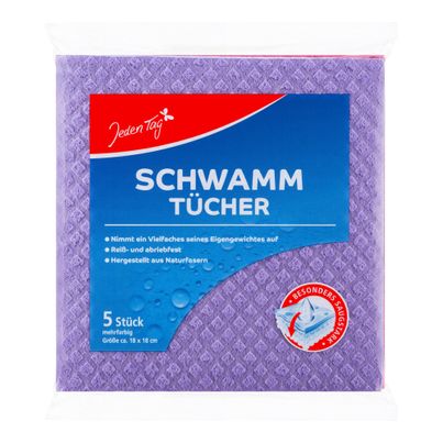 Mit den farbigen Schwammtüchern von JEDEN TAG bringst du frischen Wind in deine Putzroutine. Jedes Tuch misst ca. 18 x 18 cm und überzeugt durch seine hohe Saugkraft, die dir dabei hilft, Schmutz und Flüssigkeiten mühelos aufzunehmen. Diese praktischen Helfer sind nicht nur vielseitig einsetzbar in Küche und Bad, sondern auch äußerst langlebig: Sie sind waschbar bis 95 °C, was bedeutet, dass du sie immer wieder verwenden kannst, ohne an Saugkraft zu verlieren.