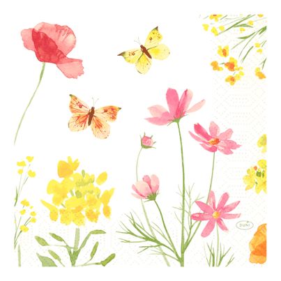 Die DUNI Servietten "Poppy Field" bringen frischen Wind auf deinen Tisch und sind die perfekte Wahl für Frühlings- und Sommerfeiern. Mit einer Größe von 33 x 33 cm und einem ansprechenden, mehrfarbigen Design, das an blühende Mohnfelder erinnert, verleihen sie jedem Anlass eine lebendige Note. Diese 3-lagigen Servietten bieten nicht nur eine ansprechende Optik, sondern auch die nötige Stabilität und Saugfähigkeit, um deinen Tisch während des Essens sauber zu halten.