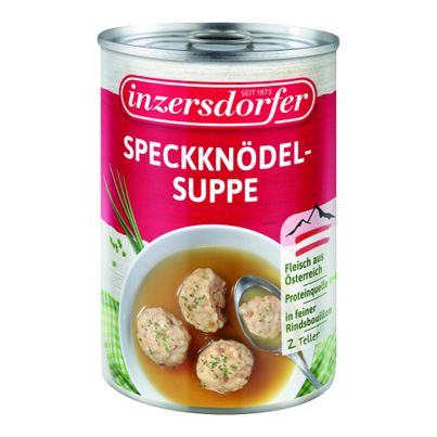 Wasser, Speckknödel 23% [Wasser, Knödelbrot (WEIZEN, Speisesalz, Hefe), Schweinefleisch geselcht (Schweinefleisch, Wasser, Nitritpökelsalz (Speisesalz, Konservierungsstoff: Natriumnitrit), Maltodextrin, Stabilisator: Natriumcitrat, Gewürzextrakte, Antioxidationsmittel: Natriumascorbat, Rauch), WEIZENMEHL, modifizierte Stärke, Milchpulver (MILCH), Sonnenblumenöl, Volleipulver (EI), Petersilie, Zucker, Rauch, Zwiebelpulver, jodiertes Speisesalz (Speisesalz, Kaliumiodid)], Rindsuppegekörnt (Speisesalz, Stärke, Rindfleischextrakt, Zucker, Sonnenblumenöl, Zwiebeln, Karotten, Karamellzucker, Tomaten, SELLERIE, Lauch, Maltodextrin, Petersilie, Knoblauch, Gewürzextrakt), gekörnte Brühe (Speisesalz, pflanzliches Eiweißhydrolysat, Maiskeimöl), Petersilie |