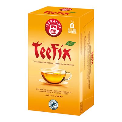 Der Teefix Schwarztee von Teekanne bietet dir eine exquisite Mischung aus erlesenen Schwarztees aus Ceylon, Indien und anderen renommierten Teeanbaugebieten. Diese sorgfältig ausgewählten Teesorten vereinen sich zu einem vollmundigen Geschmackserlebnis, das dich in die Welt der Teekultur entführt. Ein Tipp für die Zubereitung: Lass den Teebeutel in frisch aufgekochtem Wasser für etwa 3 bis 5 Minuten ziehen, um das volle Aroma zu entfalten. Der Teefix Schwarztee ist vegan und eignet sich perfekt für eine gemütliche Teestunde, besonders in der kalten Jahreszeit. Ob als wärmender Begleiter an Adventstagen oder als Basis für kreative Teemischungen mit Gewürzen und Zitrusfrüchten – dieser Schwarztee bietet dir unzählige Möglichkeiten, deinen Teegenuss zu variieren. Bewahre die Teebeutel an einem trockenen, kühlen Ort auf, um die Frische und Qualität zu erhalten. Mit dem Teefix Schwarztee von Teekanne holst du dir ein Stück Teetradition nach Hause, das sowohl pur als auch mit einem Schuss Milch oder Zitrone überzeugt.