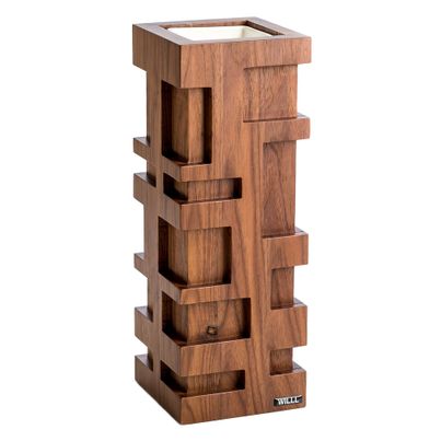 Die außergewöhnliche Dekoration für Ihr Zuhause. Die Vase Modell Toronto ist auch ohne Blumen ein Hingucker. Das Nussholz wurde lackiert und hat rechteckige Ausnehmungen, die taschenförmig über die Ecken verlaufen. Der Holzkörper misst 355/130/130mm. Der Einsatz aus Keramik hat eine Größe von 85x85x305mm.
