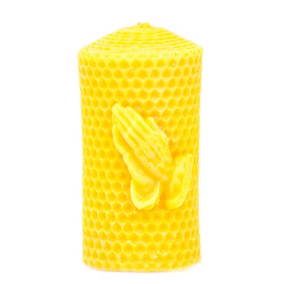 Wabenkerze mit betenden Händen - 100 Prozent reines Bienenwachs - Verbreitet einen angenehmen Duft von Fuchssteiner Bio-Imkerei