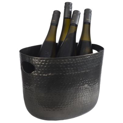Der schwarze Weinkühler von ASSHEUER & POTT überzeugt mit seiner gehämmerten Oberfläche, die jedem Tisch ein elegantes Flair verleiht. Mit einem Fassungsvermögen von 7 Litern und praktischen seitlichen Eingriffen ist er ideal für gesellige Abende. Höhe: 23 cm. Bitte beachte, dass der Kühler nicht spülmaschinengeeignet ist und von Hand gereinigt werden sollte. Perfekt, um deinen Wein stilvoll kühl zu halten!