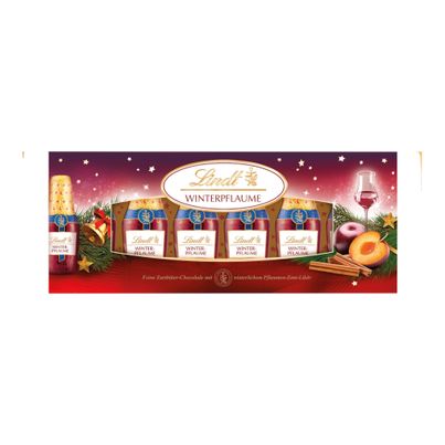 Die Winterpflaume von LINDT vereint die köstliche Süße von Schokolade mit dem fruchtigen Aroma von Pflaumen. Ideal für die kalte Jahreszeit, bietet diese Delikatesse einen besonderen Genussmoment. Die hochwertigen Zutaten, darunter Zucker, Kakaomasse und Kakaobutter, garantieren ein unvergleichliches Schokoladenerlebnis. Der enthaltene Pflaumenbrand (7%) und das Pflaumensaftkonzentrat (2%) verleihen der Schokolade eine fruchtige Note, die wunderbar mit dem zarten Schmelz der Kakaobutter harmoniert.